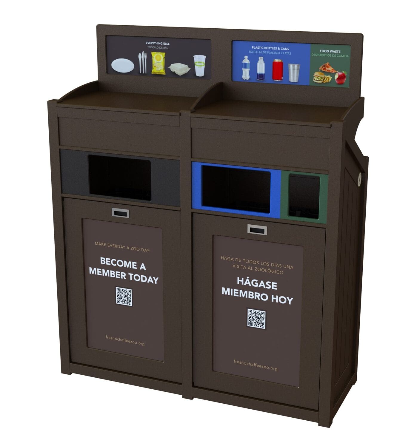Little Rock Zoo had a recycling program but it was failing. Their program consisted of separate waste and recycling containers that were not separating the recycling from the garbage effectively. They were often moved around to different areas in the zoo and sometimes not placed together which meant that visitors didn’t have the option to recycle, in some cases they just had a garbage can.
