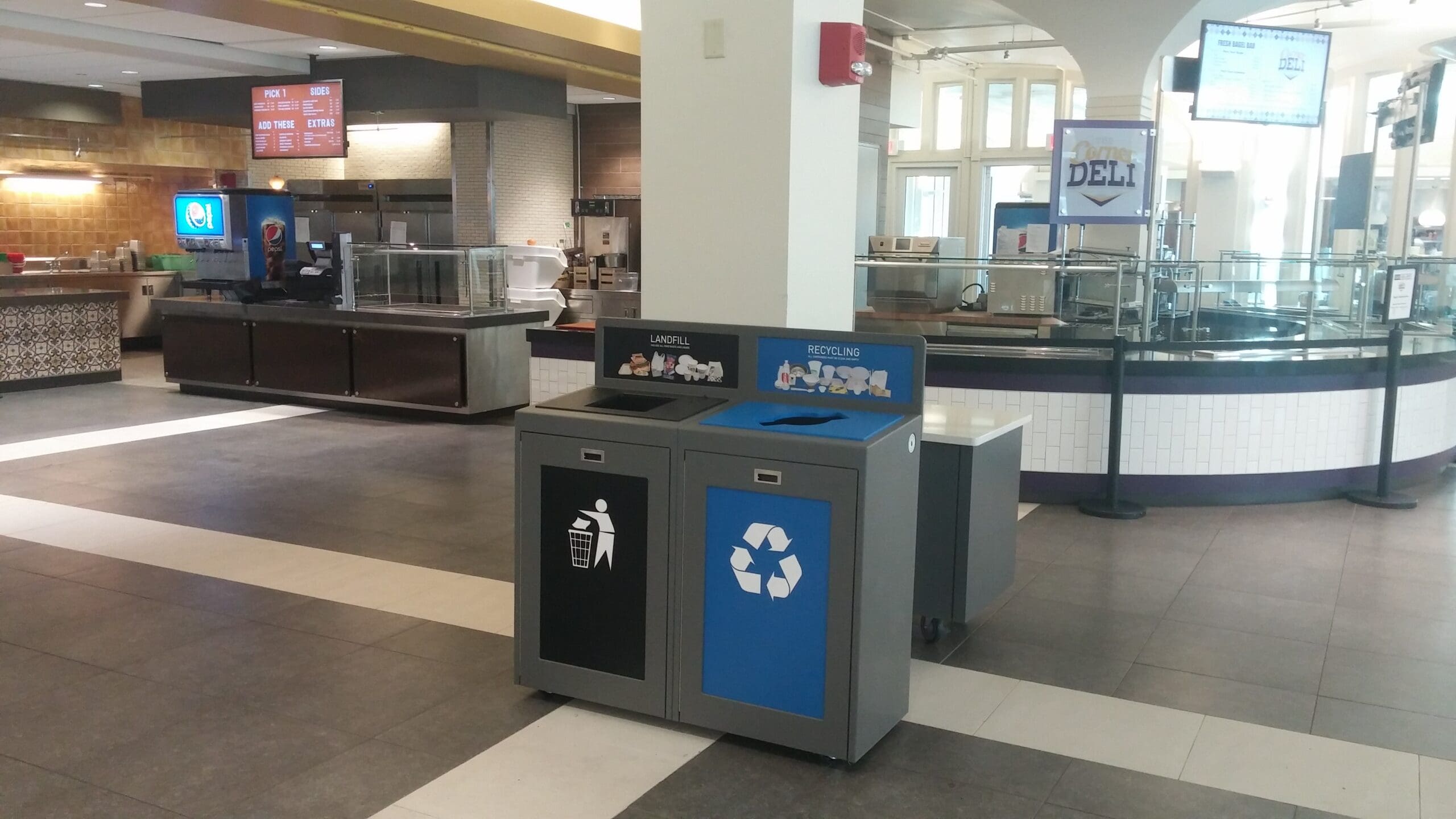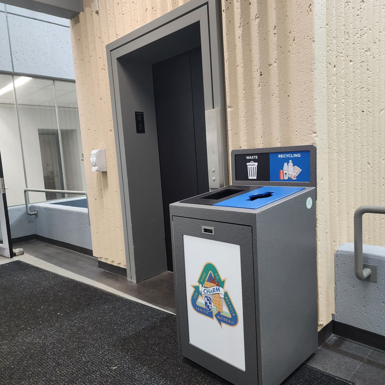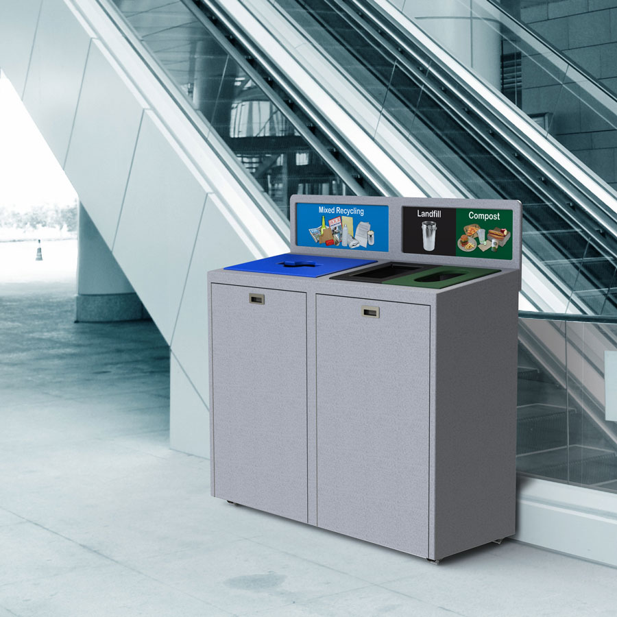 The front opening doors mean servicing is quick and easy. The Transition® divider allows you to change number and volume of streams. The high impact backboard graphics increase the effectiveness of your recycling program. TIM is also available with optional door posters.