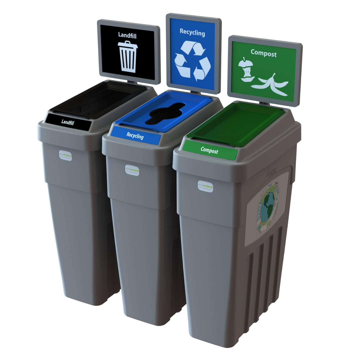 Need maximum sorting in minimal space? LeanStream™ delivers three streams in one compact, space-smart footprint. Durable, lightweight, and easy to service — a 69-gallon solution built for clean, intuitive multi-stream separation in any facility.